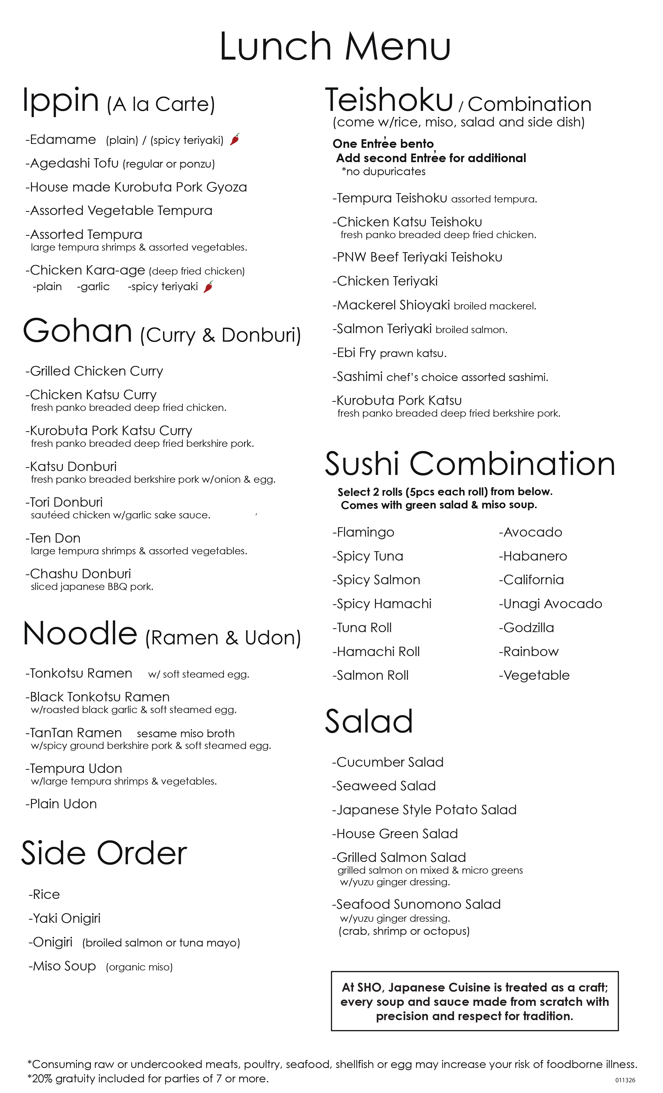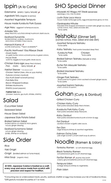 At SHO, we are a family owned restaurant that is focused on creating truly authentic Japanese food, while at the same time honoring the Portland food scene. We are focused on locally sourcing all of our high quality ingredients as much as possible to offer unmatched taste and freshness. We are a casual eatery where comfort meets culinary creativity, offering a diverse menu that satisfies all appetites.